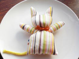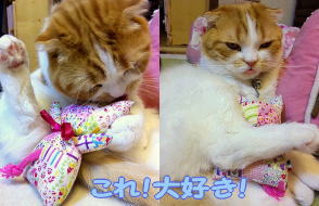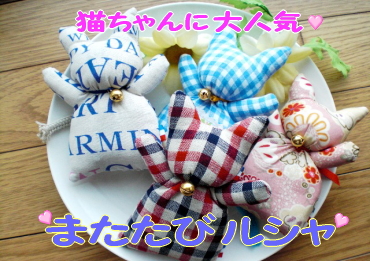 この形をヒントに猫ちゃんの形のまたたびルシャを作りました。 |