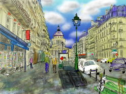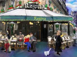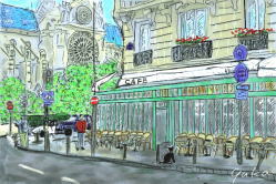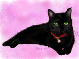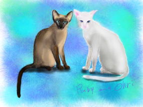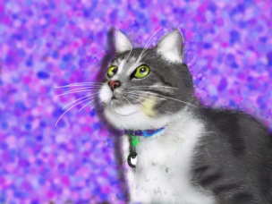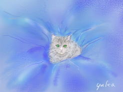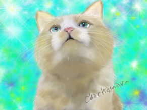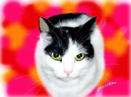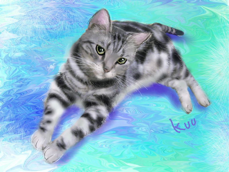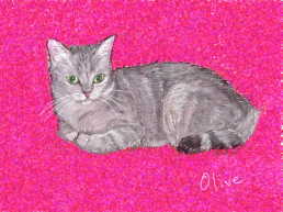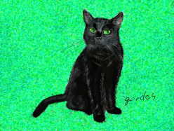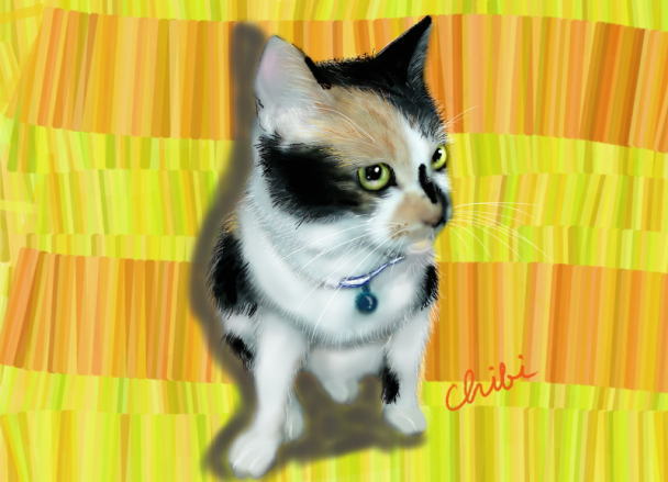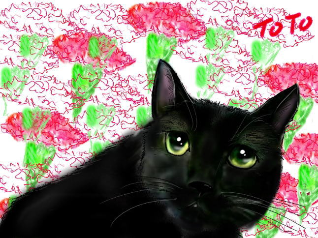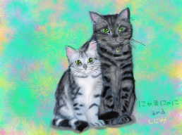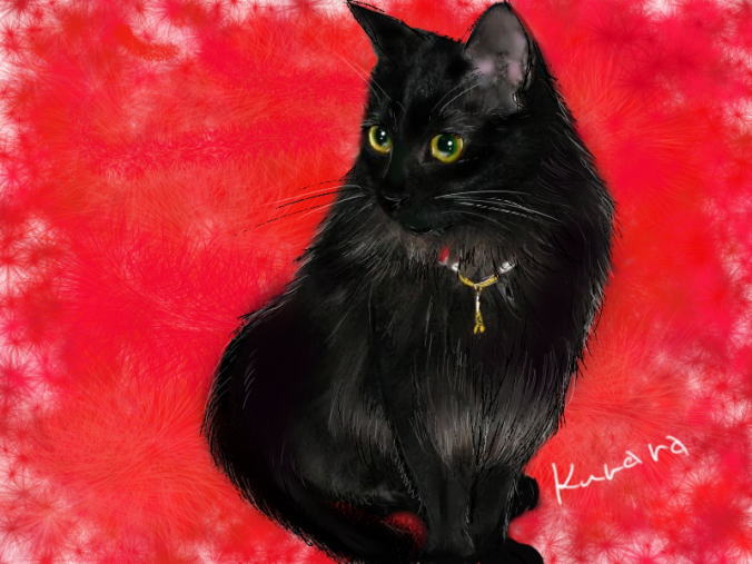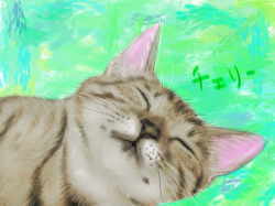 猫のいる風景、猫ちゃんの姿を描いてみました by店長