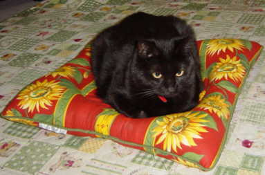 我が家の猫 クウのそばに、そっと置いてみたら、すぐにお座りしてくれましたよ!