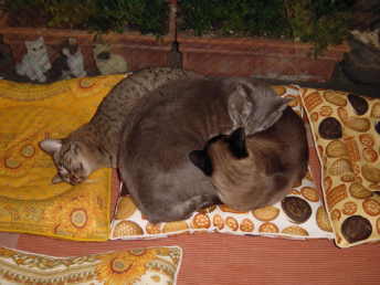 ちゃんと4つあるのになぜか無理やりに一つのねむねむに二匹が寝ているのが可愛いですぅ。