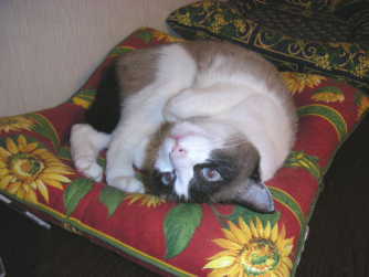 というわけで、その現場写真(笑)と、昨年自宅用に購入した赤ひまわりと青ミモザでくつろぐ愛息、かび太とごん太の画像を送らせていただきます。どうぞ見てやってくださいませねむねむ、ホントにすごいです。