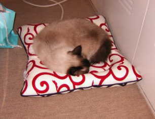 特に唐草のリバーシブルはぽん太用のホットカーペットの上に置いてあるため「超」がつくくらいお気に入りで(笑)カーペットにスイッチが入っていない時でも、その上にちょんと座っています。