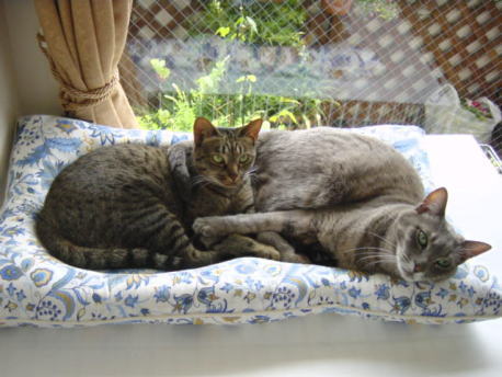 乾さんちのCooちゃんCocoちゃんゆきちゃんレオちゃんです。いつも仲良く一緒のねむねむに寝たい猫ちゃんの為に特製ねむねむをご注文頂きました。