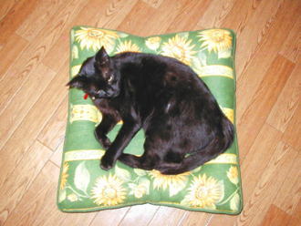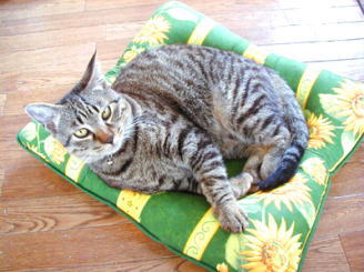 大好きな黄色と緑色の入った布を選んだのですが、とても鮮やかでウチの3ニャンの毛色にもマッチしていて(親バカ?)すごく嬉しいです♪