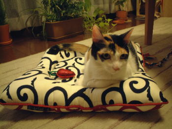 丸くなったときのにゃんこの体にフィットするように作られた形が、気持ちよさそう。