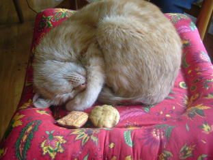 可愛い猫さん茶トラがたき(♂ 5歳)ちゃん、黒白がちー(♀ 2歳ちゃんです。またたびクッキーで遊びつかれてお昼寝中♪