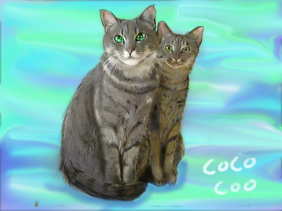 納品された肖像画のページで、他のみなさんのコメントを読ませていただいてものすごーく 期待に胸ふくらませていましたが、ココもクーも実物以上にかわいく描いていただいて大満足です。