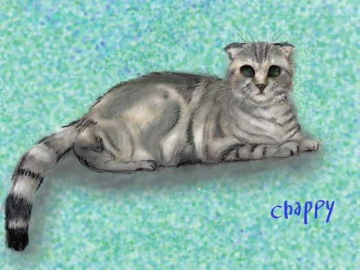 チャッピーちゃんはスコティッシュフォールド。気に入ったお写真は耳が立ってしまっているので耳折れで描いて下さいとのご依頼でした。小顔の美猫ちゃんですよね♪とっても楽しく描かせて頂きました。