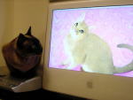 ゆきちゃんがレオちゃんの壁紙のパソコンをのぞいているお写真とメールをお送り頂きました♪